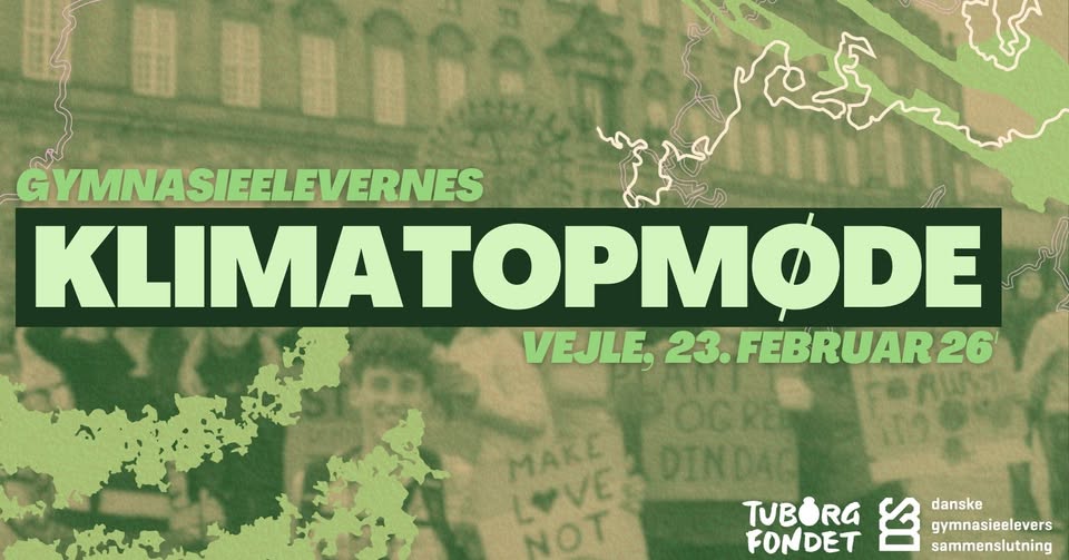 Danske Gymnasieelevers Sammenslutning glæder sig at byde jer velkommen til Gymnasieelevernes klimatopmøde d. 23. februar 2026 i Bygningen i Vejle. Dagen kommer til at byde på spændende oplæg, lærerige workshops og ikke mindst rig mulighed for at blive inspireret af andre klimainteresserede gymnasieelever fra hele landet.