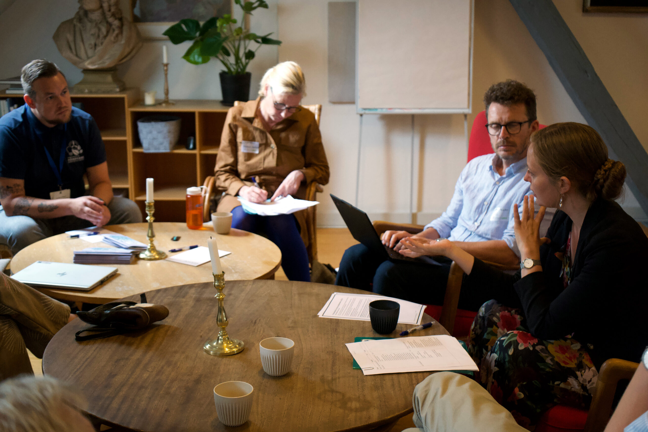 Projektet starter med et fællesmøde, hvor aktørerne udforsker temaer som handlefællesskaber, klimakommunikation og grønne vaner. Her udvikler målgrupper og samtalekort og udfolder den ønskede effekt, så vi kan sikre en tryg, inviterende ramme for åben dialog til salonerne.
